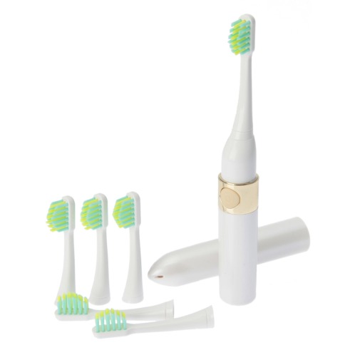 短時間のブラッシングで歯の汚れが効率的に落ちるよう設計され、歯と歯の間、歯と歯ぐきの境目、歯の溝の部分など、落ちにくい部分の汚れを逃さない奇跡の歯ブラシ ポケットインの音波式電動歯ブラシバージョン奇跡のフルスロットル(本体、専用歯ブラシ、キャップ)と、その専用替えブラシ5本、単4形アルカリ乾電池のセットです。