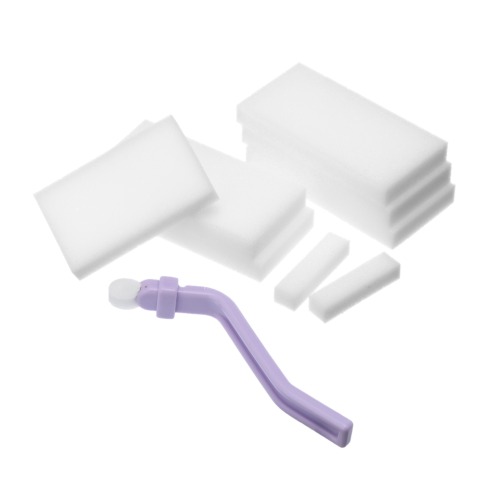 メラミンフォームでできたスポンジをハンドルに装着し、スポンジに水を含ませ、平らな面で歯の表面の汚れをこすることで簡単に歯の黄ばみを落とすことができます。