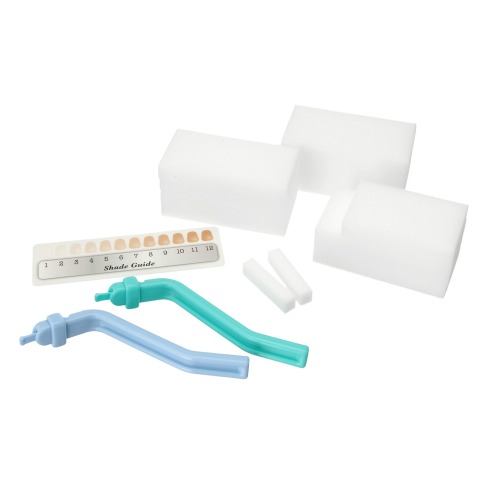 奇跡の歯のホワイトクリーナー(ハンドル2本、カラーシェード、スポンジ10連×12)のセットです。カラーシェードは、ご自身の歯の色をチェックできるアイテムです。